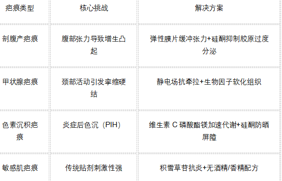 (案例佐证:四川大学华西医院2024年研究显示,硅酮+氨甲环酸复合贴治疗烧伤后色素疤痕,有效率达91.2%,显著高于单用硅酮组的68.7%)
