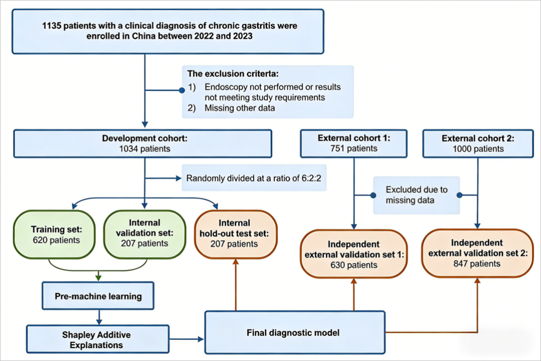 图1. “基于症状和生活方式数据的可解释机器学习模型在胃癌前病变无创筛查中的开发与验证:一项多中心队列研究” 论文