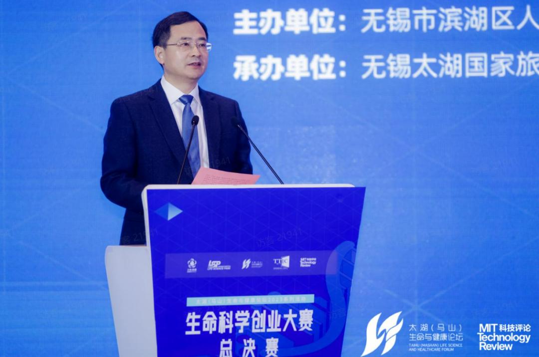 随后,滨湖区委书记孙海东作为东道主致欢迎辞。他表示,生命健康产业是无锡市重点发展的战略性新兴产业。滨湖区作为生命健康产业发展的重要承载地,汇聚了一批国际一流、业内领先的人才团队,形成了集技术、人才、资金、市场、政策于一体的完整生态链。孙海东还指出,本届大赛总决赛在无锡滨湖的落地,将以国际视野和前沿科技进一步加强产业、技术、人才在滨湖区的集聚效应,助力滨湖区生命健康产业建设。