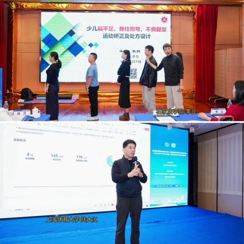 为强化学以致用,本次培训班专门设置了实操工作坊环节。石家庄学院李立教授以《少儿扁平足、脊柱侧弯、不良腿型运动纠正及处方设计》为主题,系统讲解儿童常见体态问题的评估方法与矫正性运动处方设计技巧,并组织学员现场体验,深化理解。随后,上海体育大学陆大江教授再次登场,带领《运动处方开具工作坊》,通过模拟真实病例,指导学员亲手制定个性化、安全有效的运动处方,切实推动理论知识向临床实战能力的转化。